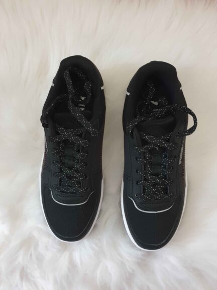 محصول خوبیه با اینکه نیم سایز بزرگتر خریدم به دلیل باریک بودن قسمت مچ پایم درد گرفت. نخ ها در نور می درخشند و در شب بازتابی وجود دارد.