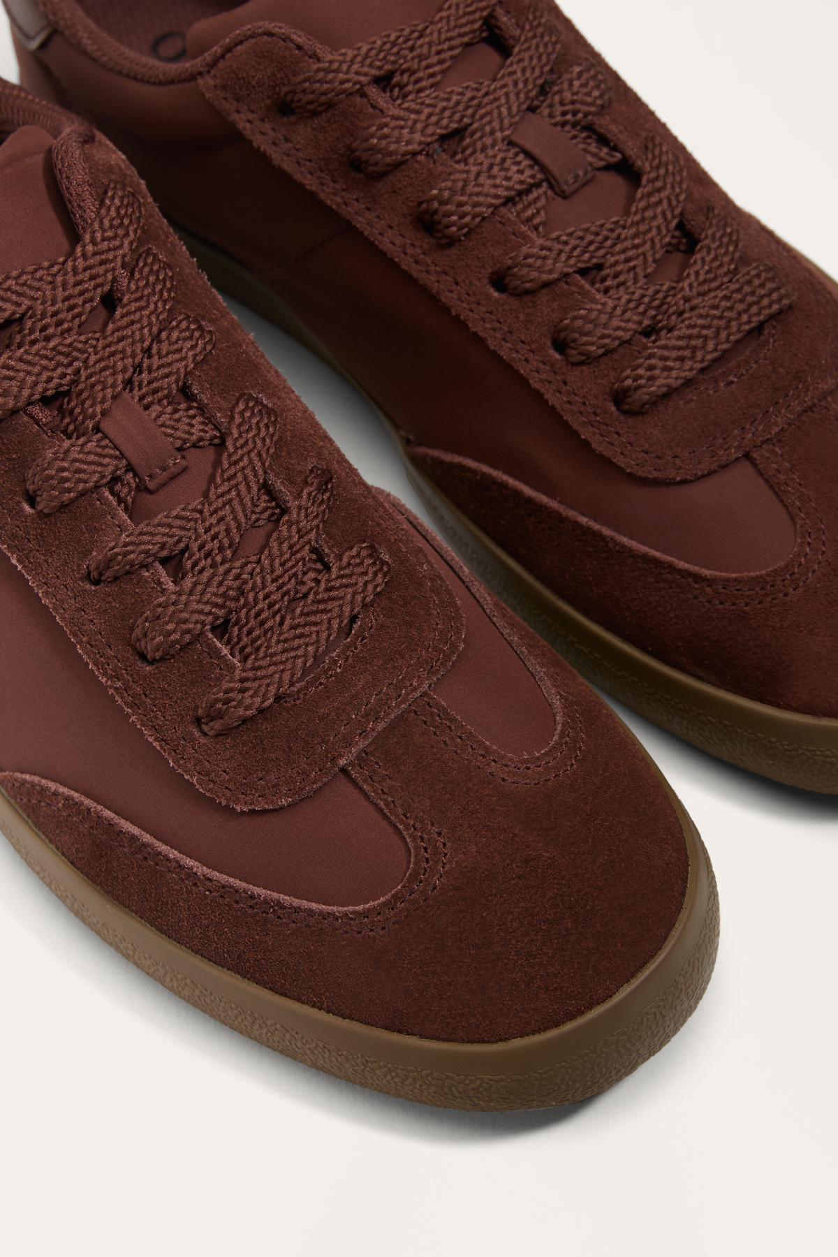 این کفش ورزشی با ترکیب نایلون و سوئد طراحی مدرنی دارد و کفی متضاد آن به زیبایی آن افزوده است. سیستم بستن با بند و نوک گرد کفش، راحتی بیشتری را برای استفاده روزمره فراهم میکند. ارتفاع کفی 2 سانتیمتر است و از مواد با کیفیتی نظیر 65% پلیاستر، 30% چرم گاوی و 5% پلییورتان ساخته شده که دوام و راحتی را تضمین میکند. برای حفظ کیفیت، بهتر است از تمیز کردن با آب و مواد سفیدکننده خودداری کرده و از پارچههای خشک یا برس نرم استفاده کنید.