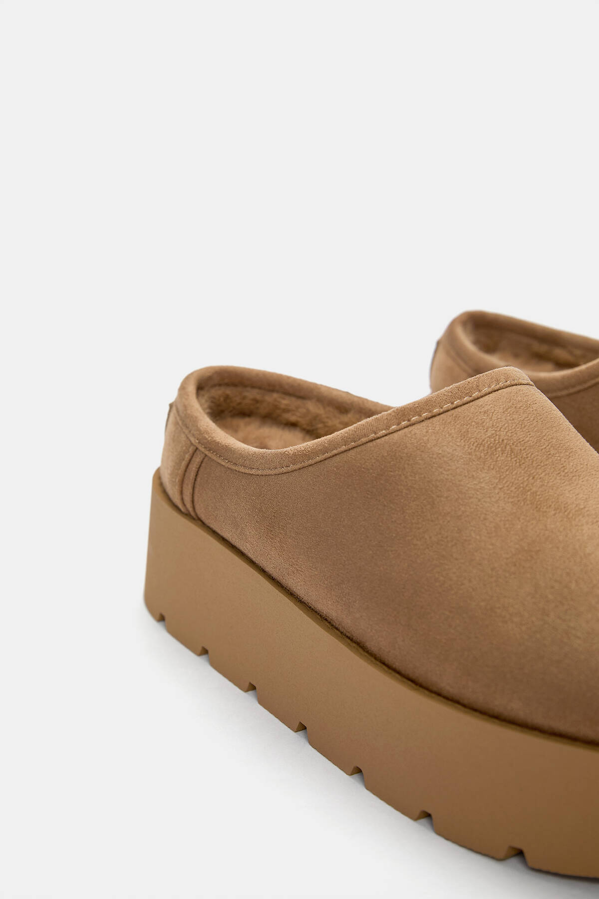این محصول یک کفش بارتن (سابه) با طراحی باز در قسمت پشتی و رنگ قهوهای است. داخل کفش با پشم نرم پوشیده شده که راحتی و گرمای بیشتری را فراهم میکند. زیره پلتفرم با ارتفاع 4.4 سانتیمتر، به راحتی و استحکام آن افزوده و مناسب استفاده روزمره است. این کفش از 86% پلیاستر و 14% الاستن ساخته شده و برای حفظ کیفیت آن، باید از شستشو و تماس با آب خودداری کرد. برند Pull&Bear با تمرکز بر روی مدهای جوانانه و راحت، به دنبال ایجاد استایلی غیررسمی و مدرن برای جوانان است.