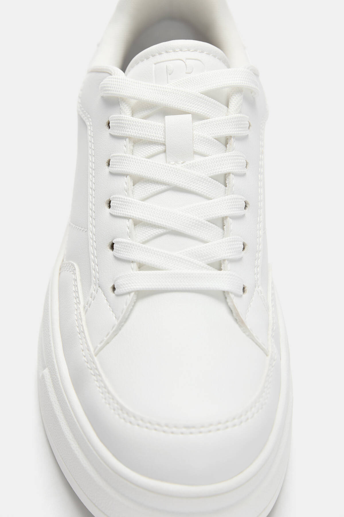 این کفش ورزشی با طراحی مدرن و رنگ سفید، گزینهای عالی برای فعالیتهای روزمره و ورزشی است. زیره حجیم و راحت آن به ارتفاع 4.5 سانتیمتر از جنس OrthoLite® ساخته شده که به راحتی و پشتیبانی از پا کمک میکند. این محصول 100% از پلیاورتان تولید شده و برای حفظ کیفیت آن، باید از شستشو و تماس با آب خودداری کرد. برند Pull&Bear با تمرکز بر روی مدهای روز و راحتی، به جوانان این امکان را میدهد که در هر سنی احساس جوانی و شادابی کنند.