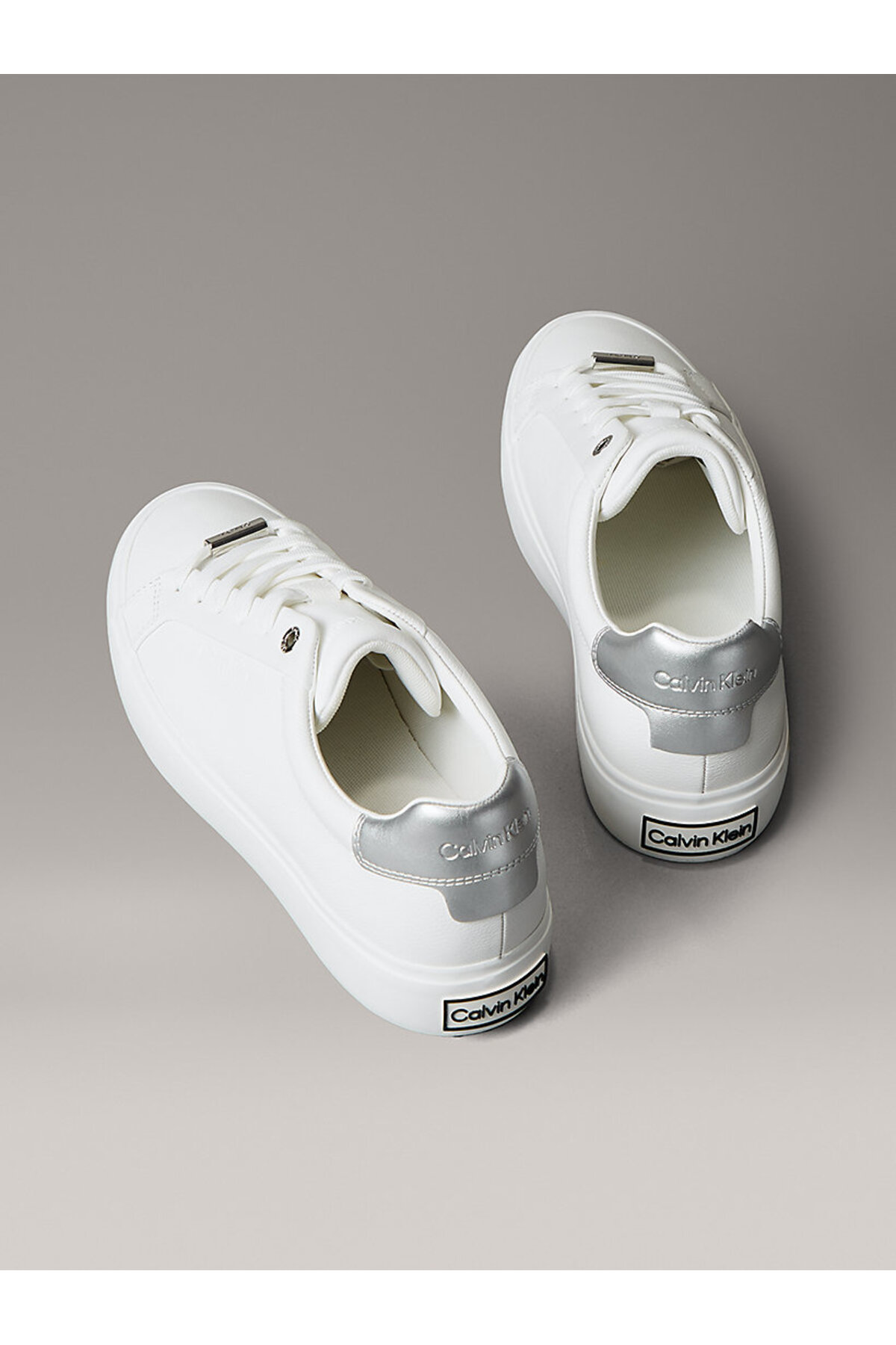 کفش زنانه با جزئیات نقرهای رنگ و بند دار sneaker – سفید از برند Calvin Klein به طور مستقیم از نمایندگی رسمی این برند در ترکیه خریداری و به همراه فاکتور فروشگاه اصلی ارسال خواهد شد.